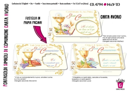 BIGLIETTO PORTASOLDI SIMBOLI DI COMUNIONE IN CARTA AVORIO