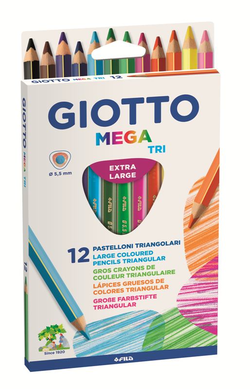 ASTUCCIO 12 GIOTTO MEGA-TRI – PASTELLI A SEZIONE TRIANGOLARE – MINA GIGANTE DIAMETRO 5,5MM