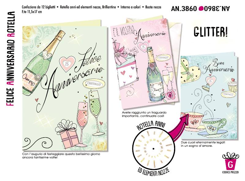 CONFEZIONE 12 BIGLIETTI ANNIVERSARIO DI MATRIMONIO