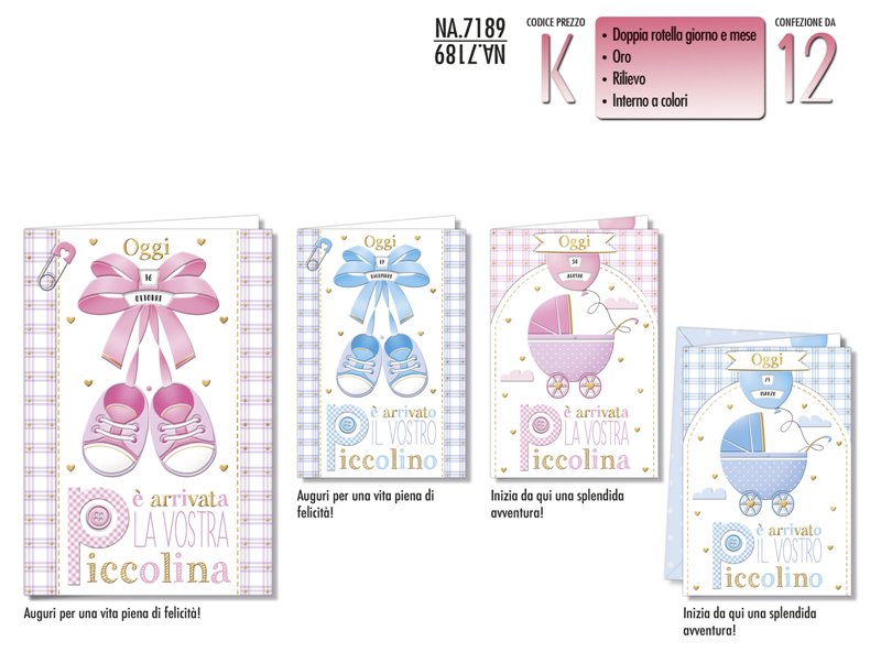 CONFEZIONE 12 BIGLIETTI NASCITA ASSORTITI