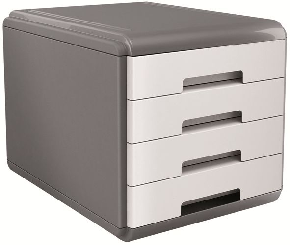 Cassettiera da tavolo con 4 cassetti colore BIANCO (Corpo grigio)- misure 29,5×38,5×28,2 cm