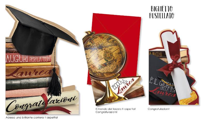 ASS.12 BIGLIETTI LAUREA C/FOIL ORO+RILIEVO