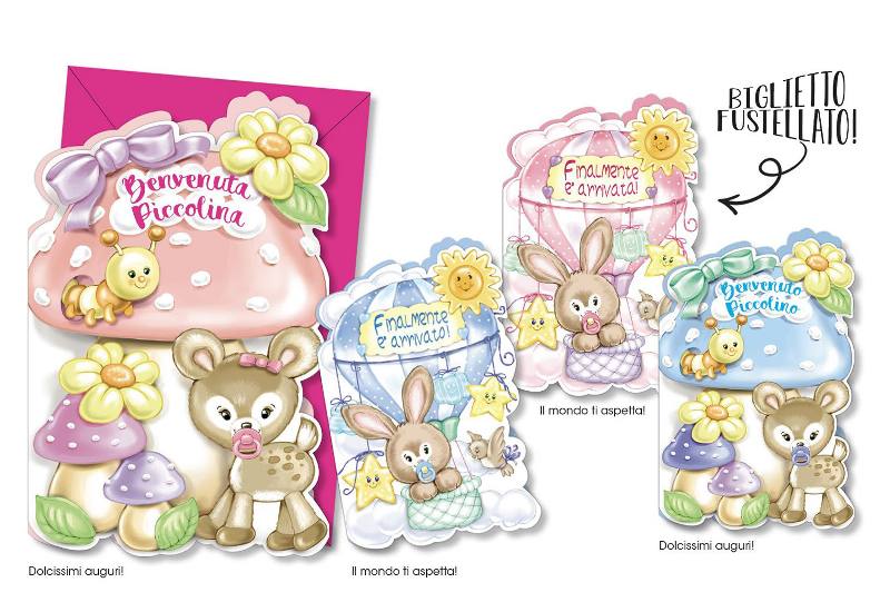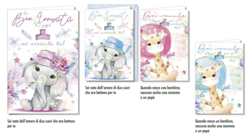 CONFEZIONE 12 BIGLIETTI NASCITA ASSORTITI