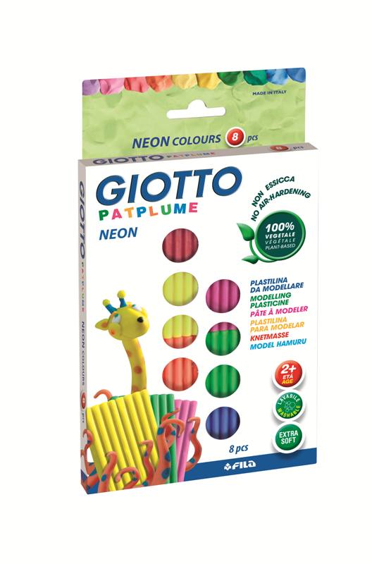 Confezione 8 panetti da 33 g di Giotto Paptlume nei colori fluo. All’interno della confezione e’ contenuto anche un sacchetto salvapatplume per riporre e conservare il prodotto.