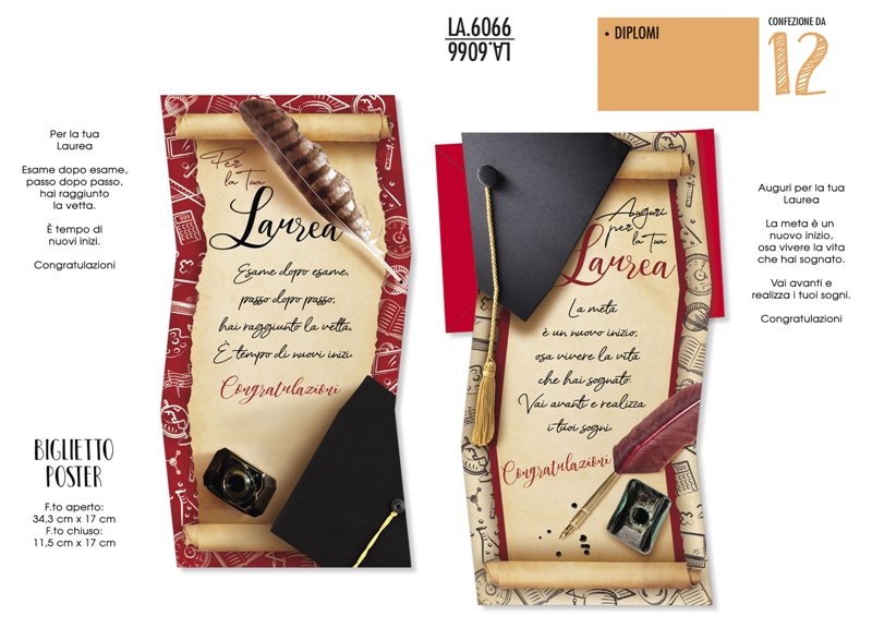 ASS.12 BIGLIETTI LAUREA C/FOIL ORO+RILIEVO