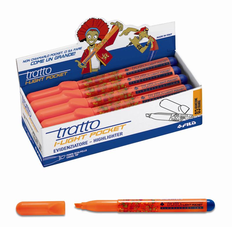 Evidenziatore TRATTO I-LIGHT POCKET ARANCIONE – punta scalpello 5,0mm, traccia 1-5mm – confezione da 12 pezzi