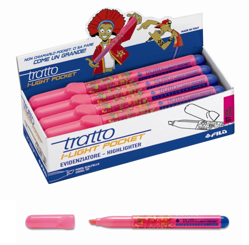 Evidenziatore TRATTO I-LIGHT POCKET FUCSIA – punta scalpello 5,0mm, traccia 1-5mm – confezione da 12 pezzi