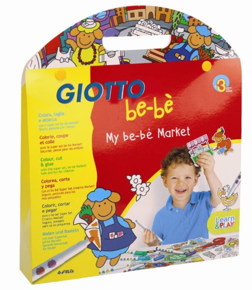 MY BEBE’ MARKET – contiene 12 pennarelli, 1 scenario gioco, 25 stickers adesivi e 1 forbicina in plastica