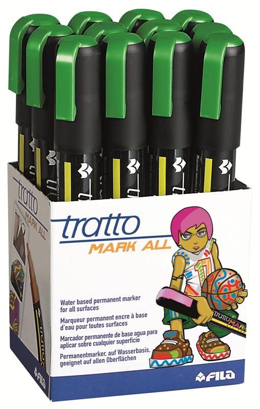 MARCATORE INDELEBILE TRATTO MARK ALL VERDE FLUO – per tutte le superfici – confezione da 12 pezzi