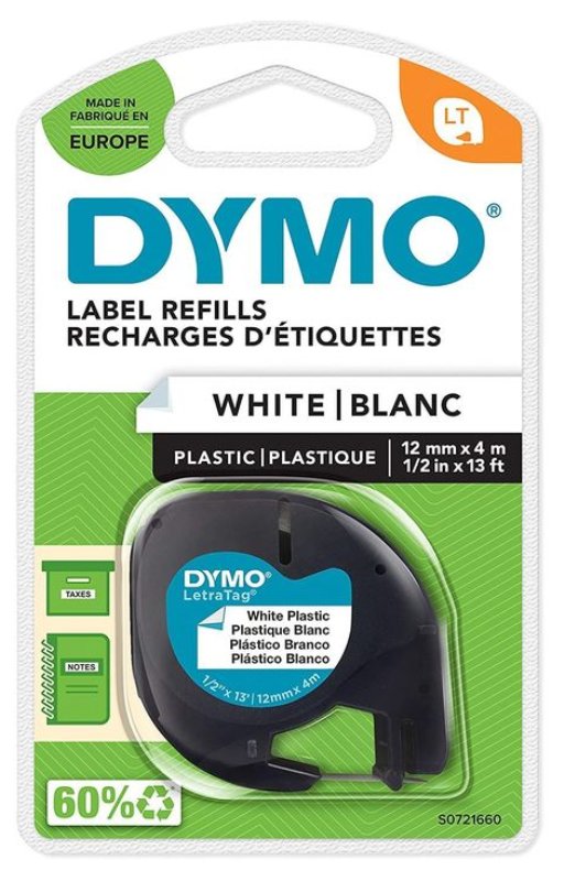 NASTRO DYMO LETRATAG 912010 BIANCO 12mmx4mt PLASTICA