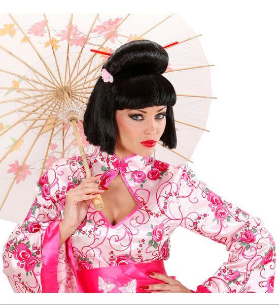 PARRUCCA GEISHA CON FIORE E BACCHETTE in scatola