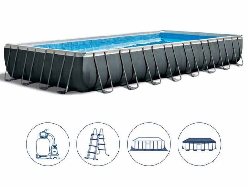 PISCINA ULTRA XTR FRAME RETTANGOLARE 975X488X132 CM, POMPA A SABBIA, SCALETTA DOPPIA, TELO BASE, COPERTURA