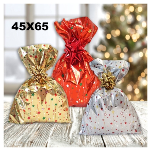 confezione 100 Buste regalo natalizie in Polipropilene misura 45×65