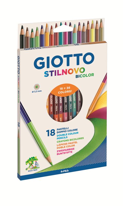 ASTUCCIO 18 GIOTTO STILNOVO BICOLOR – 36 colori in una confezione di soli 18 pastelli – Grandezza mina 3,3mm