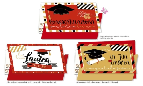 CONFEZIONE 12 BIGLIETTI LAUREA PORTASOLDI