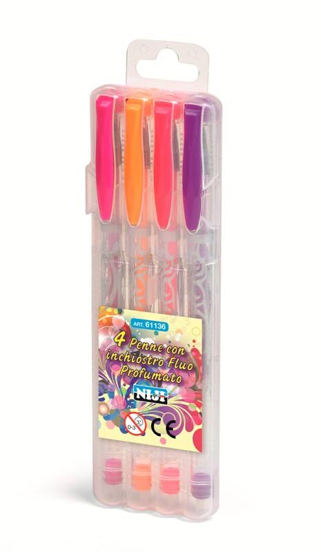 Blister 4 penne gel con inchiostro neon profumato